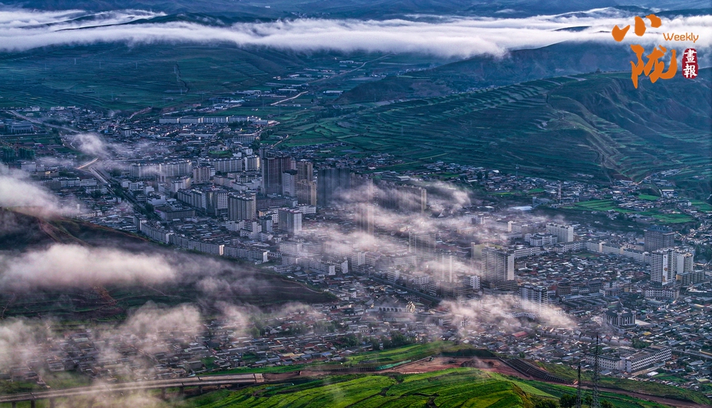 雨后放晴,山谷中的霧氣匯集升騰,化作云海環(huán)繞山峰,光線(xiàn)柔和空氣清涼,放眼望去,白云、青山、洮河、云海構(gòu)成唯美畫(huà)卷。