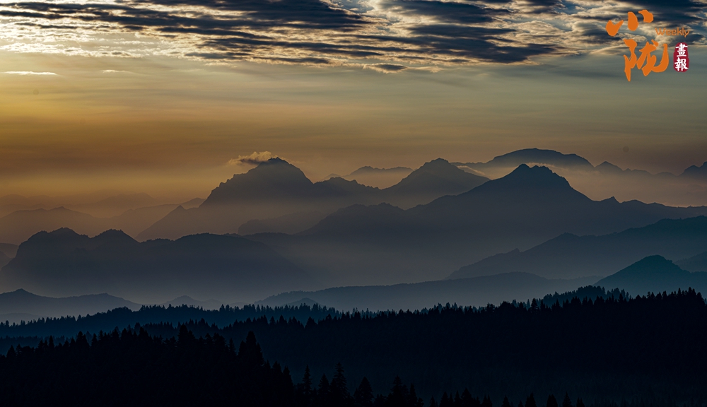 傍晚時(shí)分,天空變得絢爛多彩,晚霞映照白霧,起伏著山巒,坡地和浪漫;幾處白墻黛瓦的民居,升起炊香,滿(mǎn)目清爽之氣彌漫,用詩(shī)意繪就生態(tài)家園。
