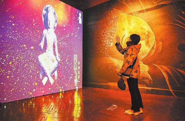 觀眾通過數(shù)字技術(shù)與敦煌文物互動。孫凡越