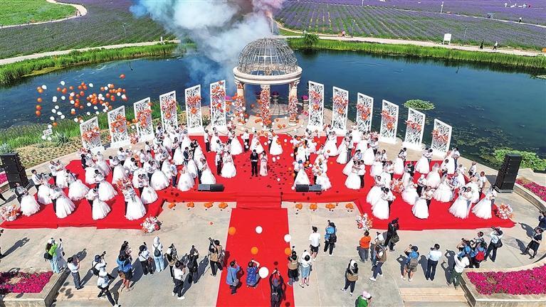 陽光、微風(fēng)、花海……夏季的金昌紫金花海充滿浪漫氣息,溫柔而熱烈。6月29日上午,連續(xù)舉辦七屆的“遇見愛,遇見你”薰衣草集體婚禮如約開場。近年來,一場場薰衣草之約集體婚禮引領(lǐng)金昌婚慶經(jīng)濟(jì)進(jìn)入一個(gè)快速發(fā)展階段,集體婚禮也成為金昌旅游對(duì)外宣傳推介的一張亮麗名片。