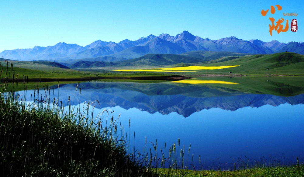 西大河水庫碧亮賜透,宛若草地上鑲嵌的藍寶石,遠處的牛羊、油菜花和壯麗的祁連山倒影水中,像一幅水彩畫?!?/p>
