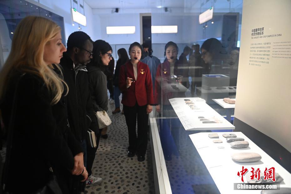 ?。保霸拢玻踩?,2024青年漢學(xué)家研修計(jì)劃甘肅班團(tuán)隊(duì)22個(gè)國(guó)家的青年漢學(xué)家,走進(jìn)甘肅省天水市秦安縣大地灣遺址參觀并進(jìn)行專(zhuān)題研修。大地灣遺址是新石器時(shí)代大型聚落遺址,出土了中國(guó)乃至世界上最早的彩陶文化、最早的文字符號(hào)、種植生產(chǎn)了中國(guó)第一批糧食品種黍、出現(xiàn)了最早的宮殿式建筑、發(fā)明了世界最早的水泥地面、創(chuàng)造了最早的繪畫(huà)作品——F411地畫(huà)。圖為22國(guó)青年漢學(xué)家參觀大地灣博物館。中新社記者 李亞龍 攝