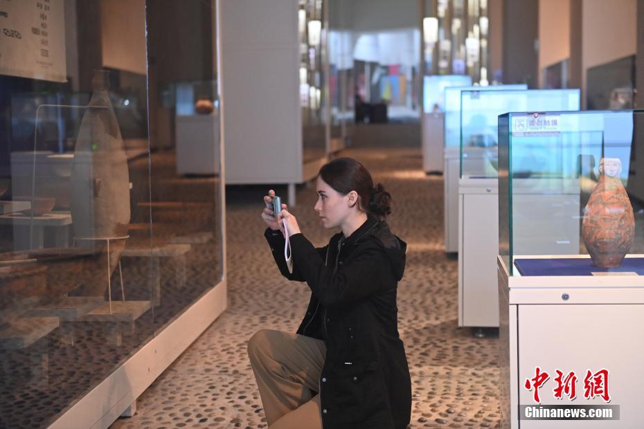 ?。保霸拢玻踩眨玻埃玻辞嗄隄h學(xué)家研修計(jì)劃甘肅班團(tuán)隊(duì)22個(gè)國(guó)家的青年漢學(xué)家,走進(jìn)甘肅省天水市秦安縣大地灣遺址參觀并進(jìn)行專(zhuān)題研修。大地灣遺址是新石器時(shí)代大型聚落遺址,出土了中國(guó)乃至世界上最早的彩陶文化、最早的文字符號(hào)、種植生產(chǎn)了中國(guó)第一批糧食品種黍、出現(xiàn)了最早的宮殿式建筑、發(fā)明了世界最早的水泥地面、創(chuàng)造了最早的繪畫(huà)作品——F411地畫(huà)。圖為國(guó)外青年漢學(xué)家拍攝大地灣博物館藏品。中新社記者 李亞龍 攝