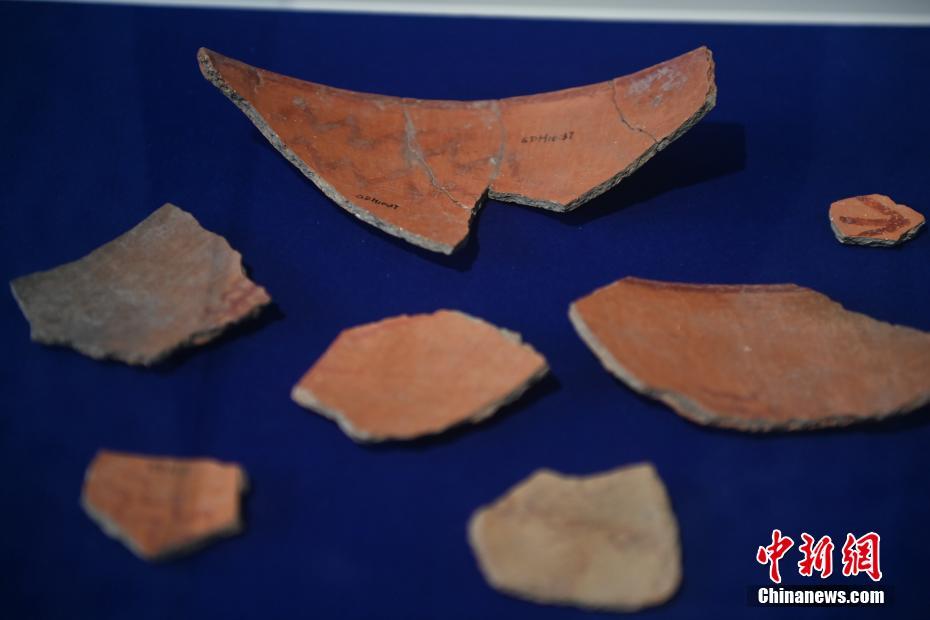 ?。保霸拢玻踩?,2024青年漢學(xué)家研修計(jì)劃甘肅班團(tuán)隊(duì)22個(gè)國(guó)家的青年漢學(xué)家,走進(jìn)甘肅省天水市秦安縣大地灣遺址參觀并進(jìn)行專(zhuān)題研修。大地灣遺址是新石器時(shí)代大型聚落遺址,出土了中國(guó)乃至世界上最早的彩陶文化、最早的文字符號(hào)、種植生產(chǎn)了中國(guó)第一批糧食品種黍、出現(xiàn)了最早的宮殿式建筑、發(fā)明了世界最早的水泥地面、創(chuàng)造了最早的繪畫(huà)作品——F411地畫(huà)。圖為大地灣博物館展品最早的文字符號(hào)彩繪符號(hào)陶片。中新社記者 李亞龍 攝
