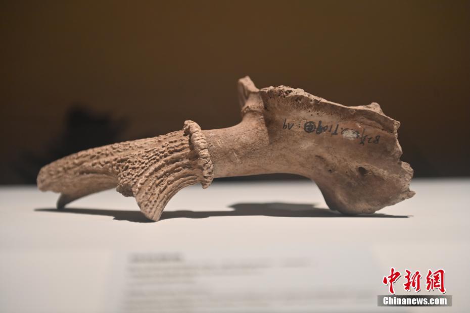 10月22日,2024青年漢學(xué)家研修計(jì)劃甘肅班團(tuán)隊(duì)22個(gè)國(guó)家的青年漢學(xué)家,走進(jìn)甘肅省天水市秦安縣大地灣遺址參觀并進(jìn)行專(zhuān)題研修。大地灣遺址是新石器時(shí)代大型聚落遺址,出土了中國(guó)乃至世界上最早的彩陶文化、最早的文字符號(hào)、種植生產(chǎn)了中國(guó)第一批糧食品種黍、出現(xiàn)了最早的宮殿式建筑、發(fā)明了世界最早的水泥地面、創(chuàng)造了最早的繪畫(huà)作品——F411地畫(huà)。圖為大地灣博物館展品梅花鹿角。中新社記者 李亞龍 攝