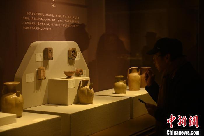 10月27日,在甘肅省蘭州市甘肅省博物館,游人參觀“唐風妙彩 —— 長沙窯瓷器精品展”。中新社記者 李亞龍 攝