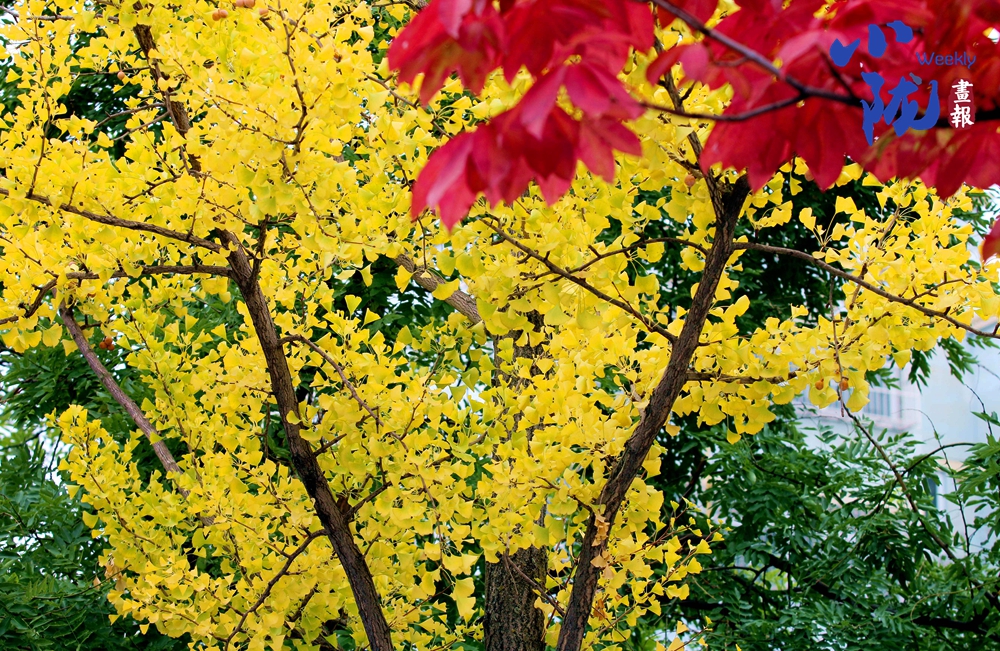 淡淡的秋霜將樹葉染成綺麗多彩的鮮紅和金黃,與綠葉共舞,層層疊疊,在凋零中展現(xiàn)生命的堅韌。