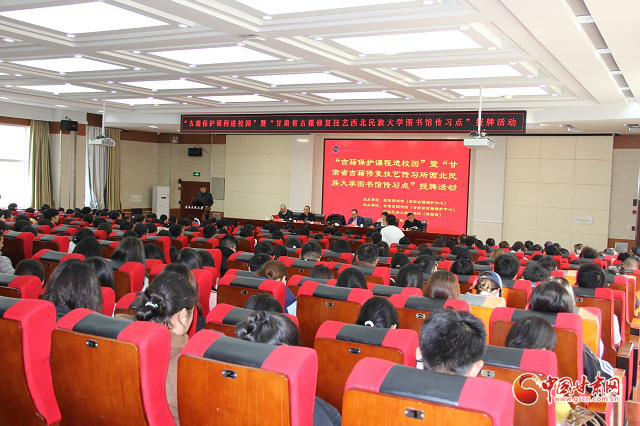 18日下午,由國(guó)家圖書館(國(guó)家古籍保護(hù)中心)主辦,甘肅省圖書館(甘肅省古籍保護(hù)中心)與西北民族大學(xué)聯(lián)合承辦的“古籍保護(hù)課程進(jìn)校園”活動(dòng)暨“甘肅省古籍修復(fù)技藝傳習(xí)點(diǎn)”授牌活動(dòng)在西北民族大學(xué)舉行。