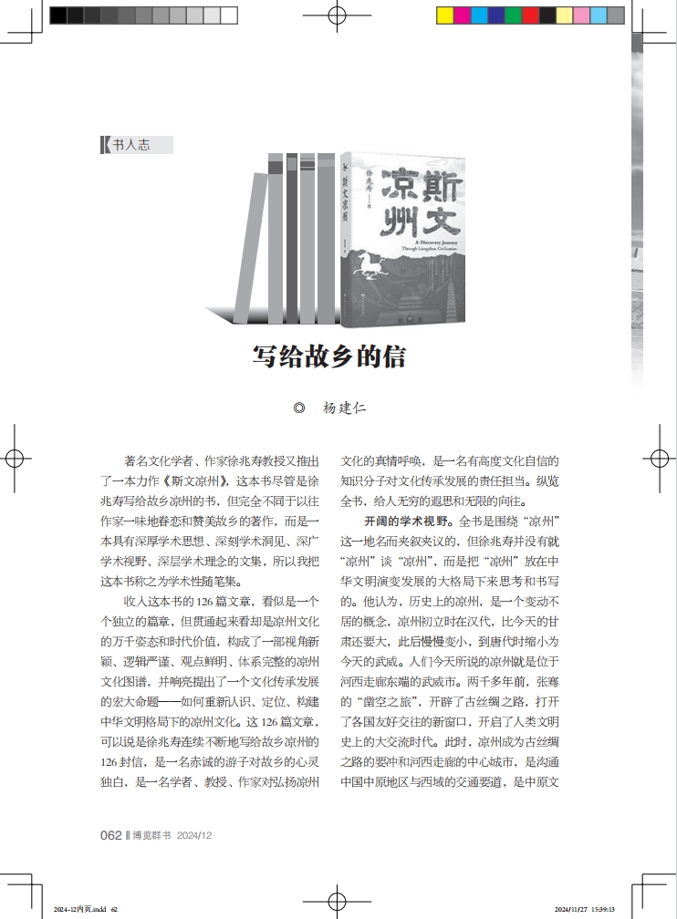 《博覽群書》期刊發(fā)表楊建仁文章《寫給故鄉(xiāng)的信》