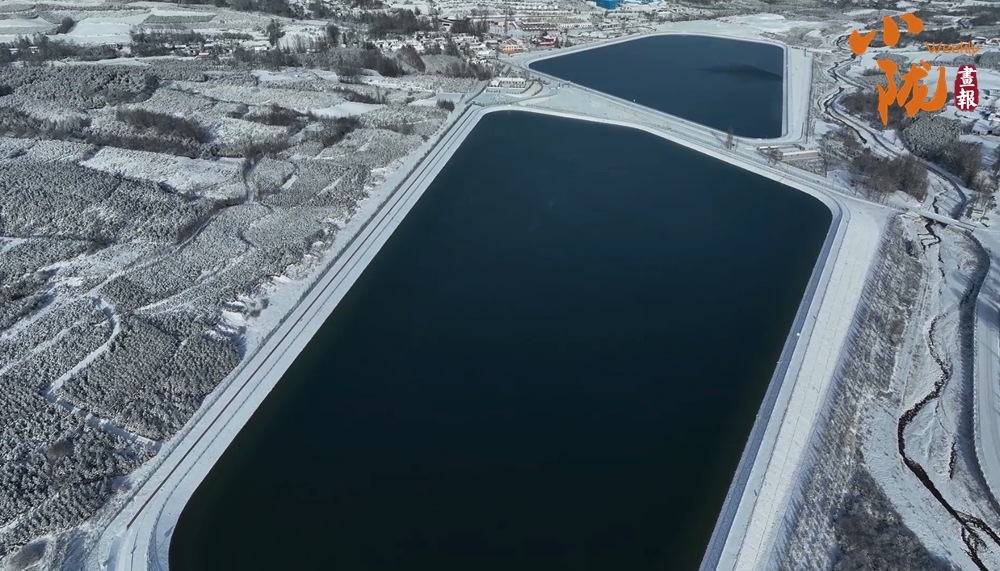 人工湖水面如鏡,與白雪相映成趣,宛如一塊無(wú)瑕的美玉鑲嵌在太子山下。