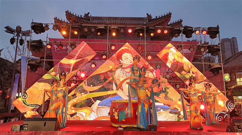 新春之際蘭州老街也會進行傳統(tǒng)非遺文化舞獅、太平鼓、民俗社火等熱鬧非凡的演藝,以豐富多彩的文化活動開啟蘭州市民新年賞燈季。