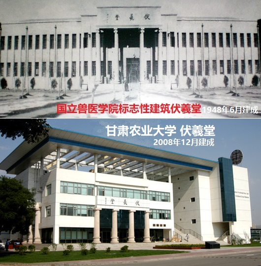 1946年10月國立獸醫(yī)學院成立后,于1948年6月建成了當年蘭州最雄偉壯觀的建筑——伏羲堂。有深厚國學功底的校長盛彤笙,為紀念人文始祖伏羲氏在認識自然、適應自然、改造自然和發(fā)展生產(chǎn)生活的過程中,所進行的一系列造福人類的發(fā)明創(chuàng)造,將這幢教學大樓命名為“伏羲堂”,并親自撰寫了一篇銘文《伏羲堂記》,“用追前烈,以志建堂之艱難”。