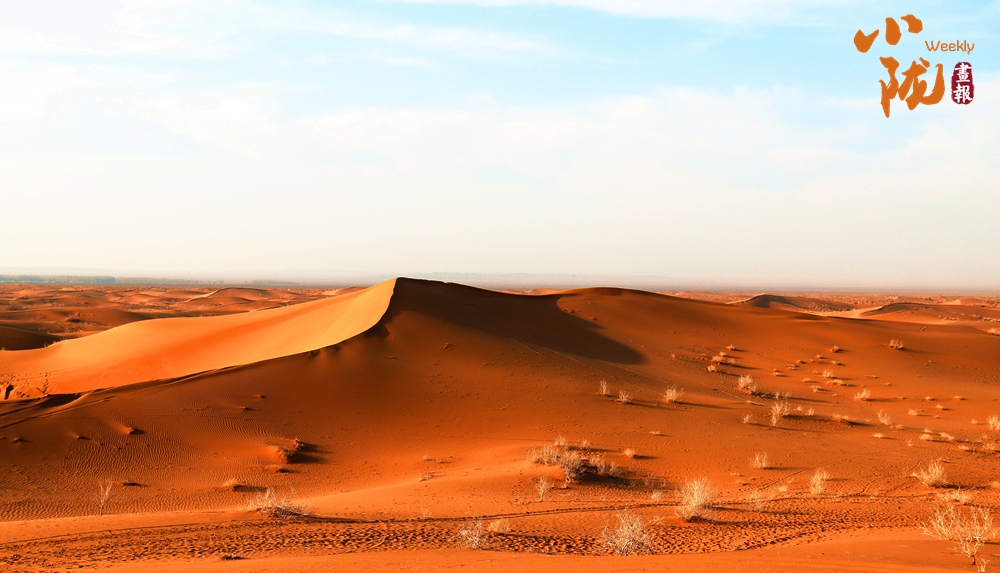 夕陽西下,極目遠(yuǎn)眺,在余暉照耀下,連綿起伏的沙丘似金色的海浪,一波接著一波,涌向天際。那細(xì)膩的沙紋,在陽光的輕撫下,宛如歲月鐫刻的痕跡,每一道褶皺都藏著故事。