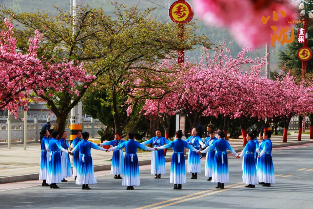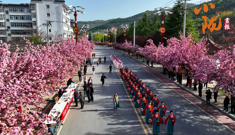 櫻花大道上,來自縣內(nèi)外的旗袍、漢服愛好者,或款步前行、或載歌載舞,古風(fēng)華服與粉色的櫻花交相輝映,為這座小城增添了一份獨(dú)特的溫婉與詩意。