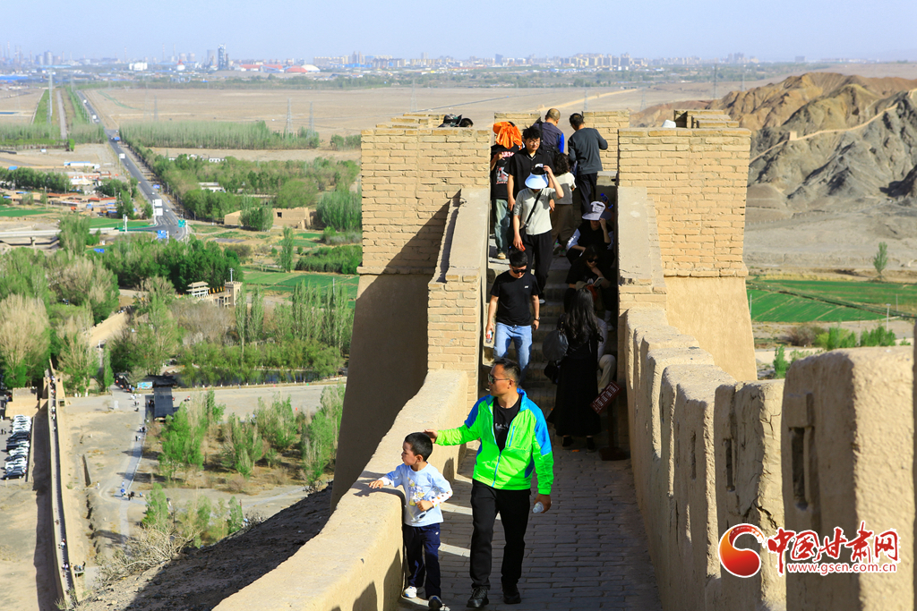 “五一”假期,甘肅省嘉峪關(guān)懸壁長(zhǎng)城旅游景區(qū)迎來(lái)了客流高峰,景區(qū)內(nèi)游人如織,熱鬧非凡。來(lái)自五湖四海的游客們紛紛慕名而來(lái),踏上這段陡峭險(xiǎn)峻的懸壁長(zhǎng)城,親身體驗(yàn)其獨(dú)特的雄壯偉岸。他們站在城墻上,極目遠(yuǎn)眺,盡情領(lǐng)略著古長(zhǎng)城所獨(dú)有的壯麗自然景觀與深厚歷史底蘊(yùn)。