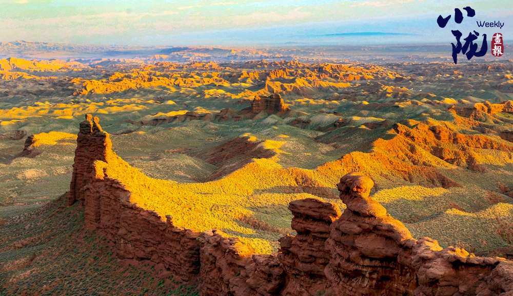 這里,丹霞地貌如同一幅絢爛畫卷。赭紅色的山體在歲月的雕琢下,形成了峰林、石柱與峽谷相互輝映的迷人景致,令人仿佛踏入了一個異域星球般的神秘世界。只有親臨其中,才能深刻體會這獨特地貌的壯美與神秘。俯瞰之下,金黃的色彩在陽光下閃耀,如同畫家精心調(diào)配的顏料鋪滿整個峽谷,鮮明而生動。