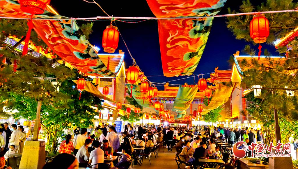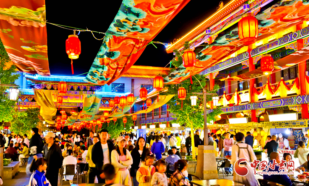 5月23日,甘肅省張掖市甘州區(qū)甘州府城內(nèi),燈光秀、書畫展、文藝展演、非遺展示令人目不暇接,美食一條街的各色美食飄香四溢,吸引眾多游客和市民前來拍照打卡,盡享夜晚美好時(shí)光。