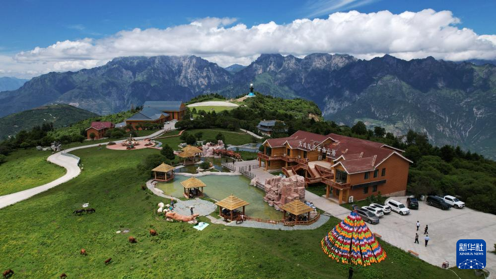 這是7月12日拍攝的舟曲拉尕山一處特色民宿(無(wú)人機(jī)照片)。新華社記者 陳斌 攝