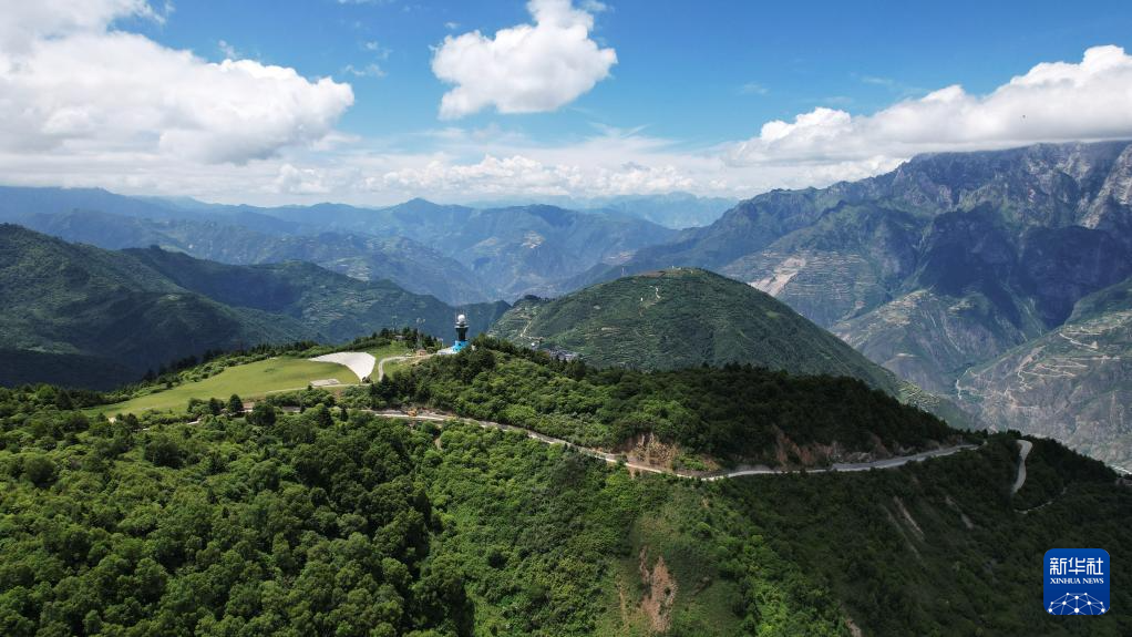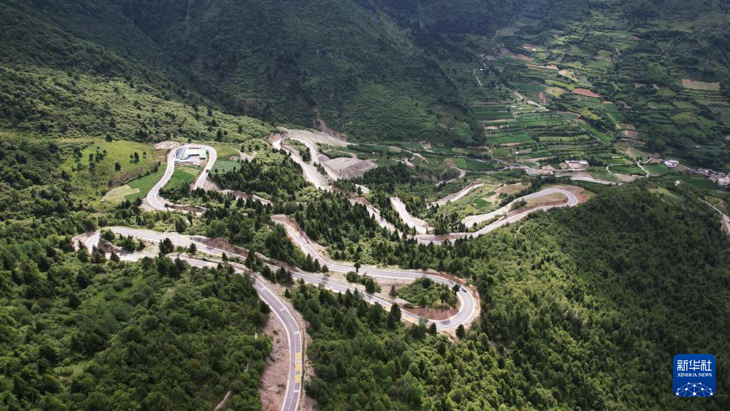 這是7月12日拍攝的舟曲“簪花之路”風(fēng)景廊道沿線風(fēng)光(無(wú)人機(jī)照片)。新華社記者 陳斌 攝