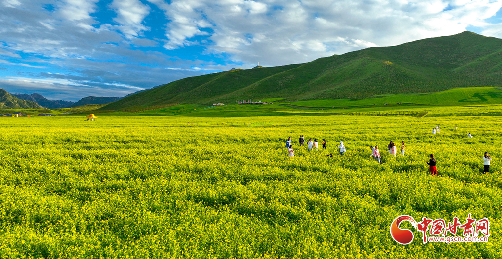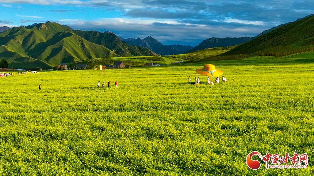 7月19日,張掖市民樂縣扁都口景區(qū)萬畝油菜花盛放。金黃的花海如巨毯鋪展,與草原綠野相接。微風(fēng)輕拂,花浪層層涌動(dòng),空氣中彌漫著淡淡清香。藍(lán)天白云映襯下,景致美不勝收,成為河西走廊一道別致風(fēng)景,吸引了眾多游客前來觀光。