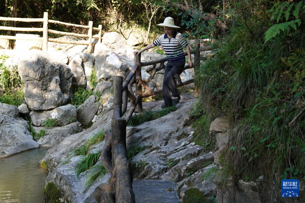 7月14日,游客在青泥嶺古蜀道遺存旁走過。新華社記者 馬寧 攝