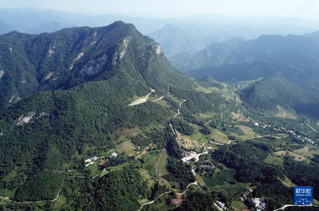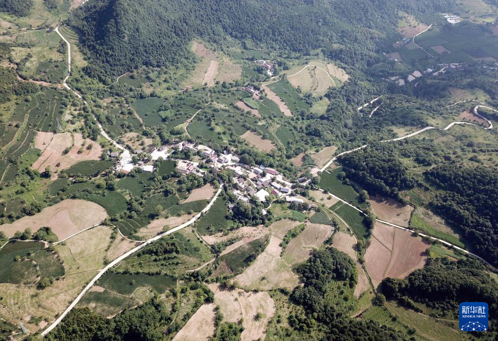 7月14日拍攝的青泥嶺上的村莊和鄉(xiāng)村道路(無人機照片)。新華社記者 馬寧 攝