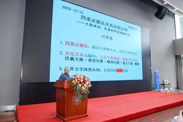 葉舒憲強調(diào)教授“四重證據(jù)法”對文明互鑒的推動作用,國際影響持續(xù)擴大。葉教授領(lǐng)銜的“神話學文庫”(第三輯)新書發(fā)布會在12月6日于上海交通大學盛大發(fā)布;“文庫”項目計劃出版71部著作,現(xiàn)已出版66本,余下5本將于2026年出版完成,將構(gòu)建起覆蓋全球25大文明圈的神話研究網(wǎng)絡(luò)。這是將“四重證據(jù)法”進行跨文明比較研究的首次探索,揭示不同神話體系共通的“根性邏輯”。