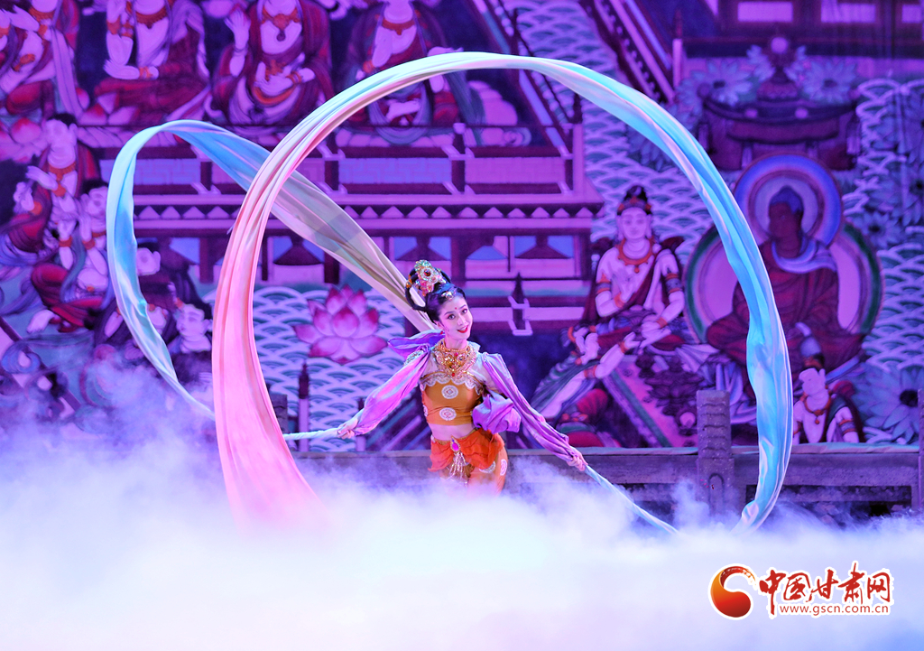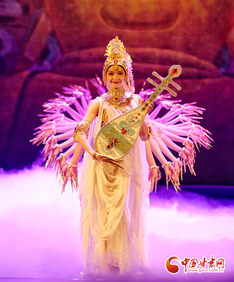 絲路漫漫、駝鈴聲聲……演出當(dāng)晚,演員們以精湛投入的表演,唱響了絲綢之路的友誼贊歌,同時(shí)也為觀(guān)眾展開(kāi)了一幅“活的敦煌壁畫(huà)”,從敦煌彩塑和壁畫(huà)中提煉出的“千手觀(guān)音”“反彈琵琶”“憑欄仙女舞”“霓裳羽衣舞”等舞蹈在舞臺(tái)上一一呈現(xiàn),深深打動(dòng)了現(xiàn)場(chǎng)觀(guān)眾,贏得無(wú)數(shù)掌聲與喝彩。