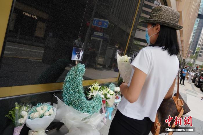 資料圖:2021年4月1日,歌迷和影迷來到香港文華東方酒店外獻上鮮花,擺上遺像,悼念張國榮。 中新社記者 張煒 攝