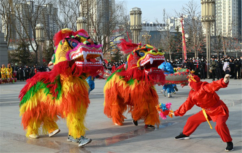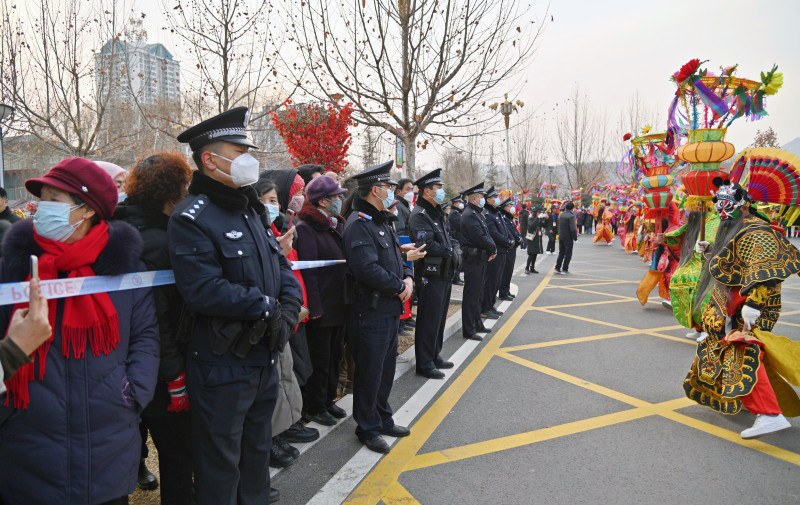 社火進(jìn)城大聯(lián)歡 民警全力保安全
