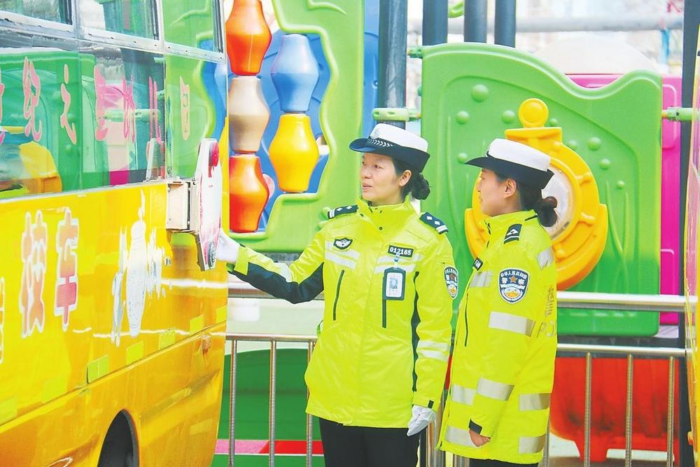 民警在檢查校車安全設(shè)施。2月19日,蘭州市公安局交警支隊(duì)七里河大隊(duì)民警走進(jìn)七里河區(qū)世紀(jì)之星幼兒園,開展校車啟封安全檢查。 新甘肅·甘肅法治報記者王輝攝