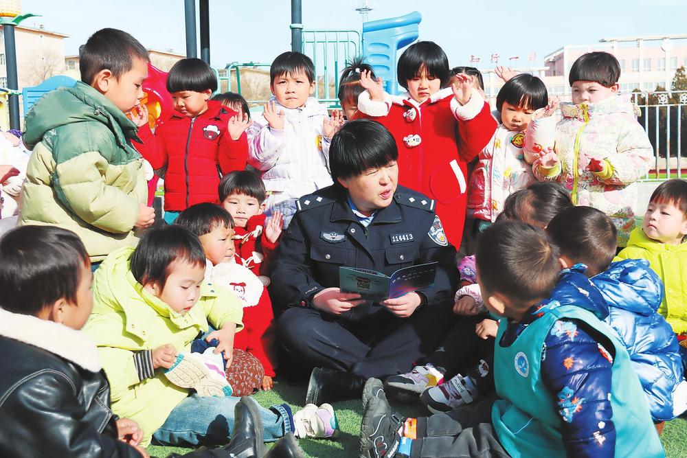 民警向小朋友講解法律知識。3月3日,隴西縣公安局西郊派出所民輔警走進(jìn)幼兒園,開展法治宣傳和安全教育。新甘肅·甘肅法治報(bào)通訊員朱艷霞攝