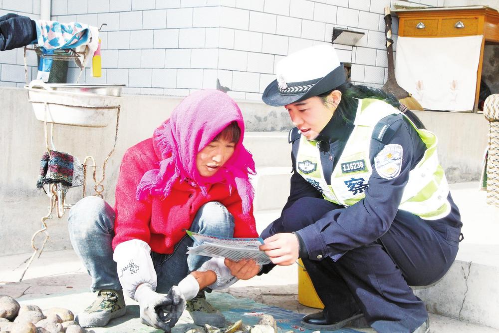 民警向群眾宣傳交通安全知識。3月10日,臨洮縣公安局交警大隊(duì)民警走村入戶,開展交通安全宣傳活動。新甘肅·甘肅法治報通訊員楊小娟攝