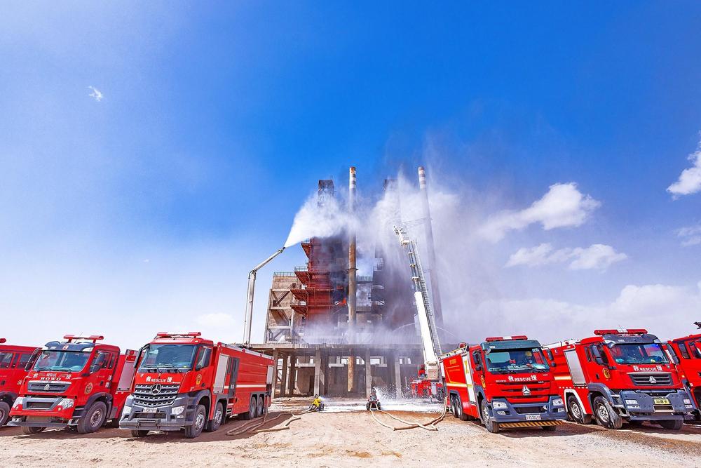 在“次生災(zāi)害滅火救援”科目現(xiàn)場,化工園區(qū)內(nèi)的熊熊烈焰映紅了半邊天。消防員身著隔熱服操控滅火機器人抵近火源,高噴車噴射出的泡沫如瀑布般覆蓋燃燒裝置,移動炮陣列織就立體火網(wǎng)。從突破火線到追殲火頭,從清理余火到看守火場,救援人員輪替堅守在一線,成功阻止火勢的蔓延。