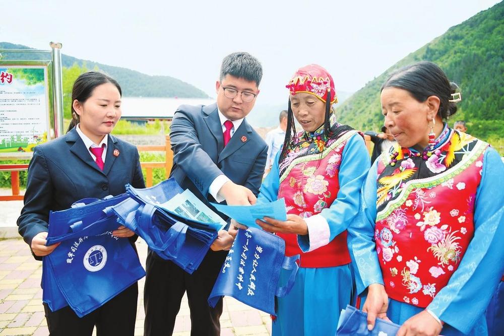 臨潭縣傳唱的“洮州花兒”與張家川縣傳唱的“張家川花兒”,將法治元素融入悠揚(yáng)山歌,積極打造貼近生活、貼近百姓的法治文化作品;在臨潭縣羊永鎮(zhèn)法治文化廣場(chǎng),身著民族服飾的歌者用嘹亮的歌聲傳唱民法典,群眾跟著旋律輕哼……各族群眾在文化交融中不斷提升法治素養(yǎng)。