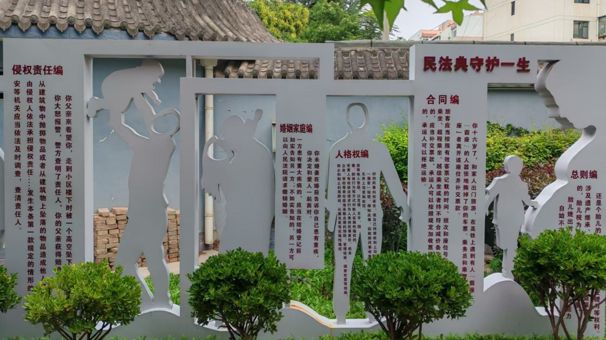 這座占地1900平方米的法治主題公園,將《中華人民共和國(guó)網(wǎng)絡(luò)安全法》《中華人民共和國(guó)數(shù)據(jù)安全法》融入游園場(chǎng)景:連接WiFi需答法治題,200余個(gè)垃圾桶印著“守法更有序”標(biāo)語(yǔ),藍(lán)色普法區(qū)掃碼可看法律發(fā)展歷程,“逛公園”與“學(xué)法律”自然融合。