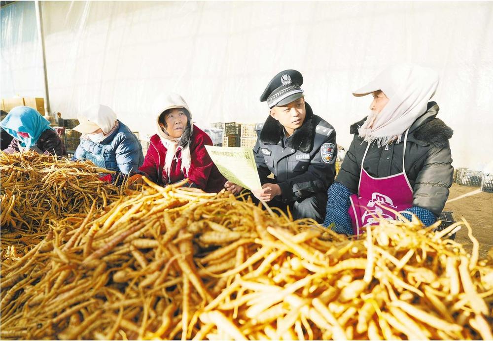 民警向企業(yè)員工宣傳防騙知識。連日來,山丹縣公安局霍城派出所組織民輔警走進(jìn)轄區(qū)企業(yè),開展集中大走訪、隱患大排查、安全大宣教等活動(dòng)。新甘肅·甘肅法治報(bào)通訊員 尚婧 攝