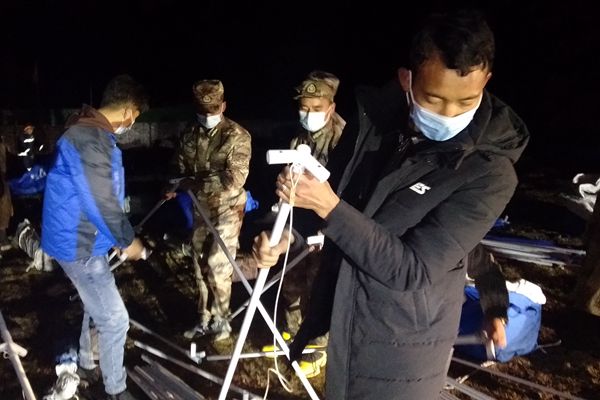 4月1日當晚,長須貢瑪鄉(xiāng)紀委干部跟隨救援隊深入震中江瑪村等地開展災情摸排和群眾救助工作,確保各類救災物資及時發(fā)放到位。圖為長須貢瑪鄉(xiāng)紀檢監(jiān)察干部在受災群眾臨時安置點參與救災帳篷搭建工作。