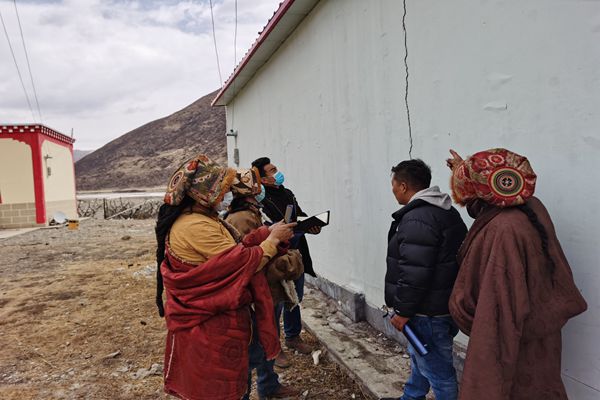 圖為石渠縣紀檢監(jiān)察干部到受災的長須貢瑪鄉(xiāng)、溫波鎮(zhèn)、瓦須鄉(xiāng)等鄉(xiāng)鎮(zhèn),深入震中實地查看排查房屋受損情況,確保受災人員、受災房屋等情況核實精準。