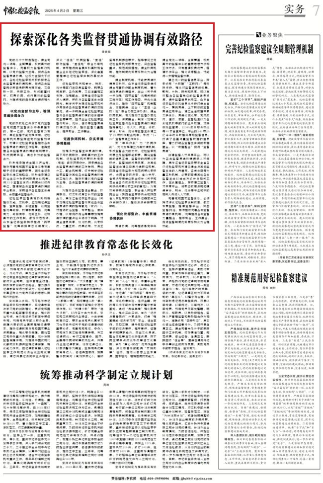 中國紀(jì)檢監(jiān)察報(bào):探索深化各類監(jiān)督貫通協(xié)調(diào)有效路徑