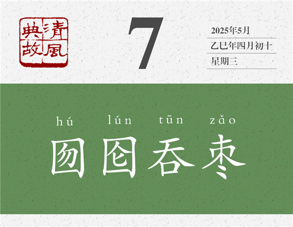 囫圇,就是完完整整的意思;把棗子完完整整地吞咽下去,就叫“囫圇吞棗”。我們常說的“囫圇吞棗”,原來是一個(gè)傻子自作聰明的“發(fā)明”。雖然完完整整地吞下了一個(gè)棗子,但嚼也不嚼,連棗核也不用吐,連棗子什么味道也不用嘗,直接就咽下去了,這是聰明之舉嗎?吃東西為什么要咀嚼,既是為了品嘗滋味、享受過程,也是為了更好地消化吸收、獲取營養(yǎng)。后世即以“囫圇吞棗”為典,比喻學(xué)習(xí)或借鑒過程中的死記硬背、照本宣科現(xiàn)象??此茡?jù)為己有了,實(shí)則只是走了個(gè)過場而已。朱自清《論詩學(xué)門徑》:“一個(gè)高中文科的學(xué)生,與其囫圇吞棗或走馬看花地讀十部詩集,不如仔仔細(xì)細(xì)地背誦三百首詩。”