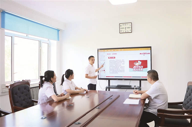 黑龍江省大興安嶺地區(qū)紀(jì)委監(jiān)委貫徹帶頭過(guò)緊日子要求,通過(guò)常態(tài)化教育機(jī)制推動(dòng)紀(jì)檢監(jiān)察干部將勤儉理念融入日常工作和生活。圖為大興安嶺地區(qū)新林區(qū)紀(jì)檢監(jiān)察干部圍繞厲行節(jié)約、反對(duì)浪費(fèi)開展學(xué)習(xí)。王麗 攝