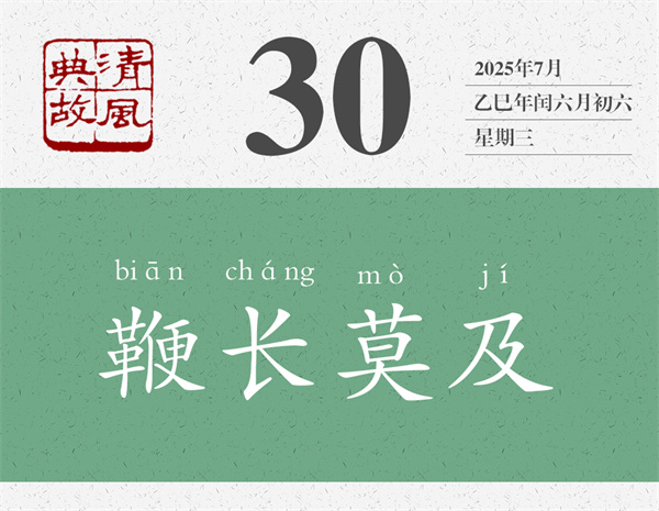 先古語,后民諺,伯宗的一番高能輸出,晉景公全無招架之功,只好打消了出兵救宋的念頭。“雖鞭之長,不及馬腹”的意思是,鞭子再長,也不能打在馬肚子上。不是因?yàn)楸拮佑|及不到馬肚子,而是因?yàn)轳R肚子不是鞭子該打的地方。后世則以“鞭長莫及”為典,說明鞭子雖然長,但還是打不到想打的地方,比喻因?yàn)榫嚯x太遠(yuǎn),而無能為力,或者因?yàn)閷?shí)力不足,不能想得太遠(yuǎn)。