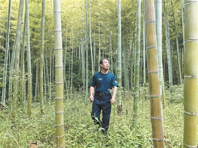 2011年,余村啟動(dòng)竹林修復(fù)工程,土生土長(zhǎng)的余村人汪苗青成為首批護(hù)林員。他告訴記者,“在竹林開(kāi)發(fā)中我們有個(gè)規(guī)矩:只能砍6年以上的竹子、不能砍新竹,村民們也都自覺(jué)地不再私砍濫伐,這都是對(duì)生態(tài)環(huán)境的守護(hù)。”