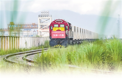 8月23日,前往老撾萬(wàn)象的國(guó)際貨物列車(chē)駛出中老鐵路中國(guó)玉溪研和站。當(dāng)日,中老鐵路國(guó)際貨物列車(chē)(玉溪—萬(wàn)象)實(shí)現(xiàn)雙向開(kāi)行。新華社記者 陳欣波 攝