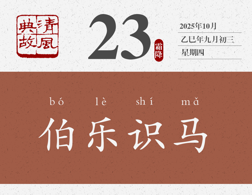 春秋秦穆公時(shí),有一個(gè)著名的相馬師叫孫陽(yáng)。因?yàn)樯裨拏髡f(shuō)中,掌管天馬的神仙叫伯樂(lè),人們?yōu)榱吮硎緦?duì)孫陽(yáng)的敬佩,就稱他為伯樂(lè)。屈原《九章•懷沙》以及《莊子•馬蹄》《列子•說(shuō)符》都曾經(jīng)提到過(guò)伯樂(lè)?!稇?zhàn)國(guó)策•楚策四》里,春申君的舍人汗明,向春申君講了一個(gè)關(guān)于千里馬的故事:“夫驥之齒至矣,服鹽車而上太行。蹄申膝折,尾湛胕潰,漉汁灑地,白汗交流,中阪遷延,負(fù)轅不能上。伯樂(lè)遭之。下車攀而哭之,解纻衣以冪之。驥于是俛而噴,仰而鳴,聲達(dá)于天,若出金石聲者,何也?彼見伯樂(lè)之知己也。”