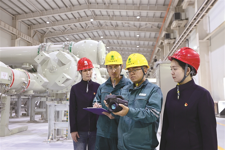 國網寧夏電力有限公司紀委以有力監(jiān)督推動“寧電入湘”特高壓線路工程投運后各項工作平穩(wěn)有序推進。圖為近日,該公司紀委工作人員在國網寧夏超高壓公司中寧換流站開展現場監(jiān)督檢查。王天鵬 攝