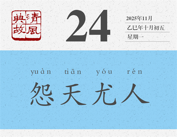 朱熹《論語集注》對(duì)“不怨天,不尤人”的理解要簡潔得多,也深刻得多:“不得于天而不怨天,不合于人而不尤人。”《荀子·榮辱》則更進(jìn)一層:“自知者不怨人,知命者不怨天。”能夠看清自己的人就不會(huì)去埋怨別人,那么埋怨誰呢,當(dāng)然是埋怨自己了;能夠知道自己命運(yùn)的人就不會(huì)怪罪于天,那么怪罪誰呢,當(dāng)然是怪罪自己了。后世則反“不怨天,不尤人”之意,而以“怨天尤人”為典,形容遇到不稱心的事情,或者事情不順利的時(shí)候,一味埋怨天,一味責(zé)怪別人。言外之意,就是不從主觀上找原因,不在自己身上找問題。宋人李昌齡《太上感應(yīng)篇》:“苛虐其下,恐嚇于他。怨天尤人,呵風(fēng)罵雨。”