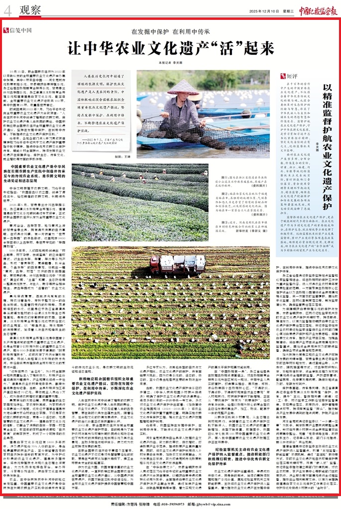 紀(jì)檢監(jiān)察機(jī)關(guān)主動將農(nóng)業(yè)文化遺產(chǎn)保護(hù)納入監(jiān)督重點(diǎn),推動職能部門積極履行職責(zé),推進(jìn)中華優(yōu)秀農(nóng)耕文化保護(hù)傳承
