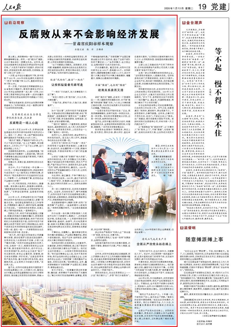 全面從嚴(yán)治黨永遠(yuǎn)在路上。慶陽(yáng)的實(shí)踐是警示,更是啟示:反腐敗從來不會(huì)影響經(jīng)濟(jì)發(fā)展,反而有利于經(jīng)濟(jì)發(fā)展持續(xù)健康。黃土塬上的清風(fēng),正吹拂出更廣闊的發(fā)展天地。(記者 張洋 王錦濤)